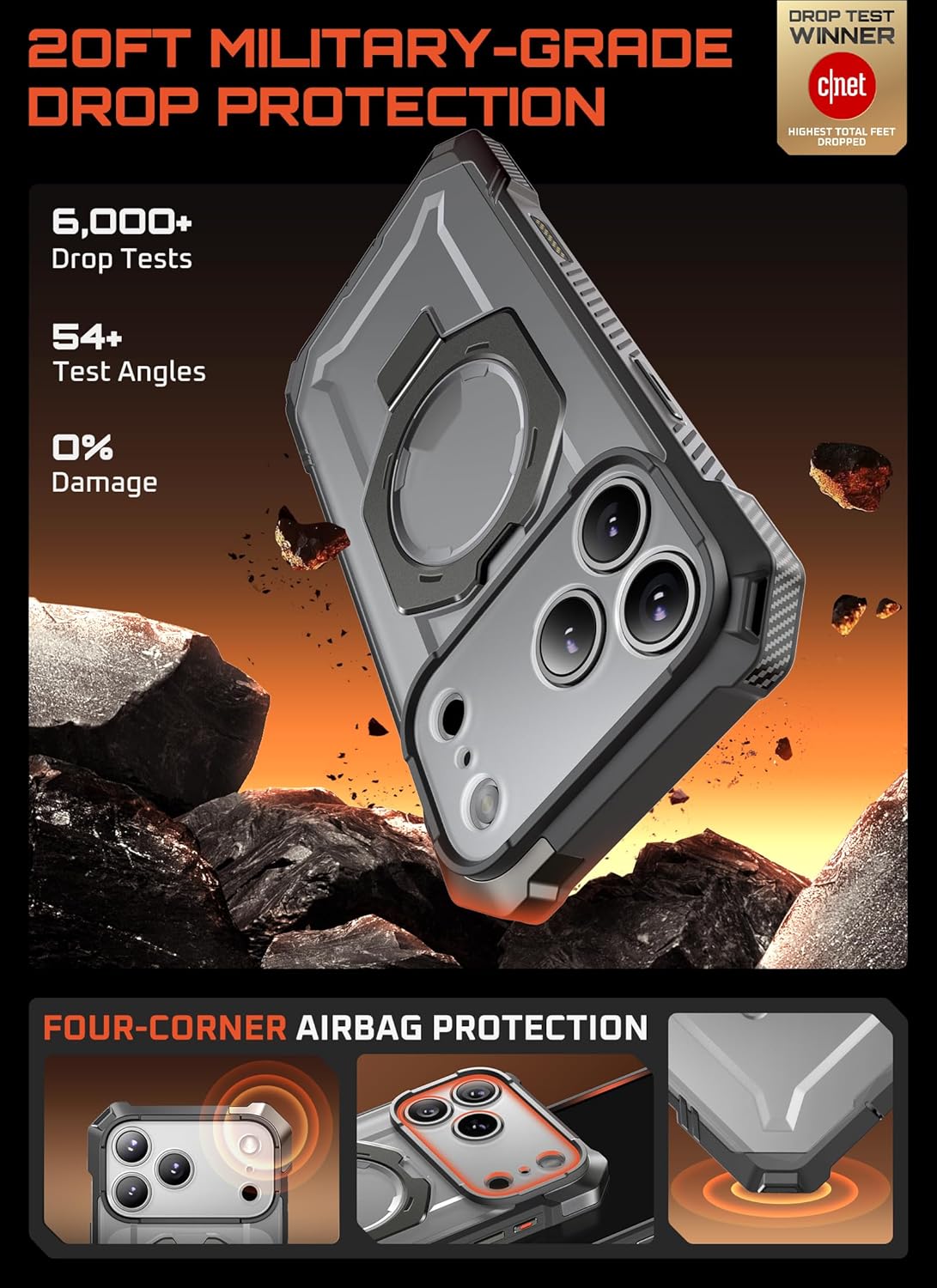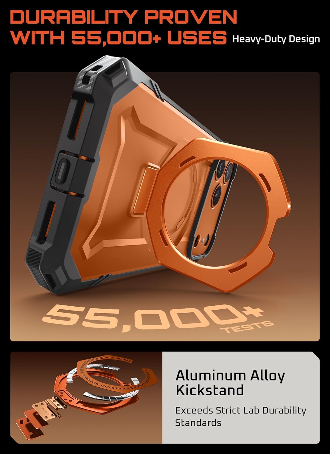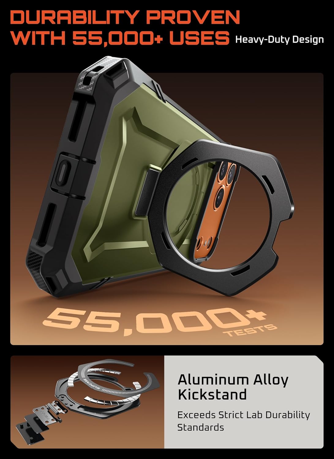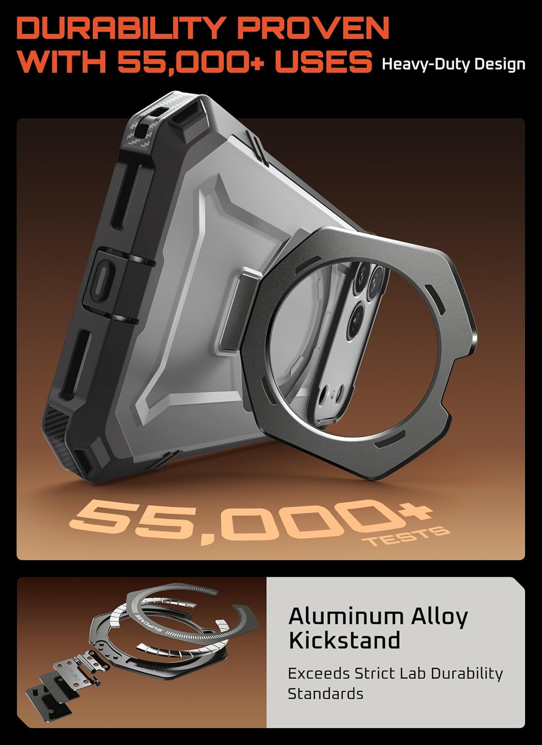 • [Kickstand & MagSafe Features]: Built-in aluminum alloy kickstand provides multiple viewing angles. N52 strong magnet with up to 1800g magnetic force ensures seamless compatibility with MagSafe accessories.