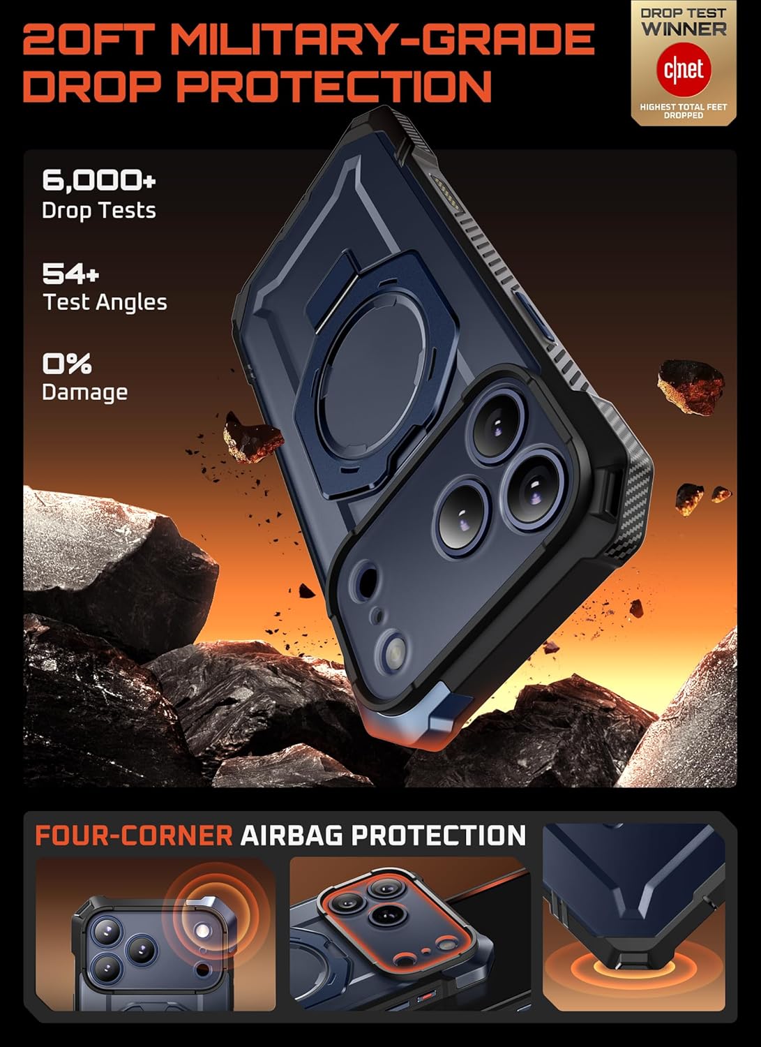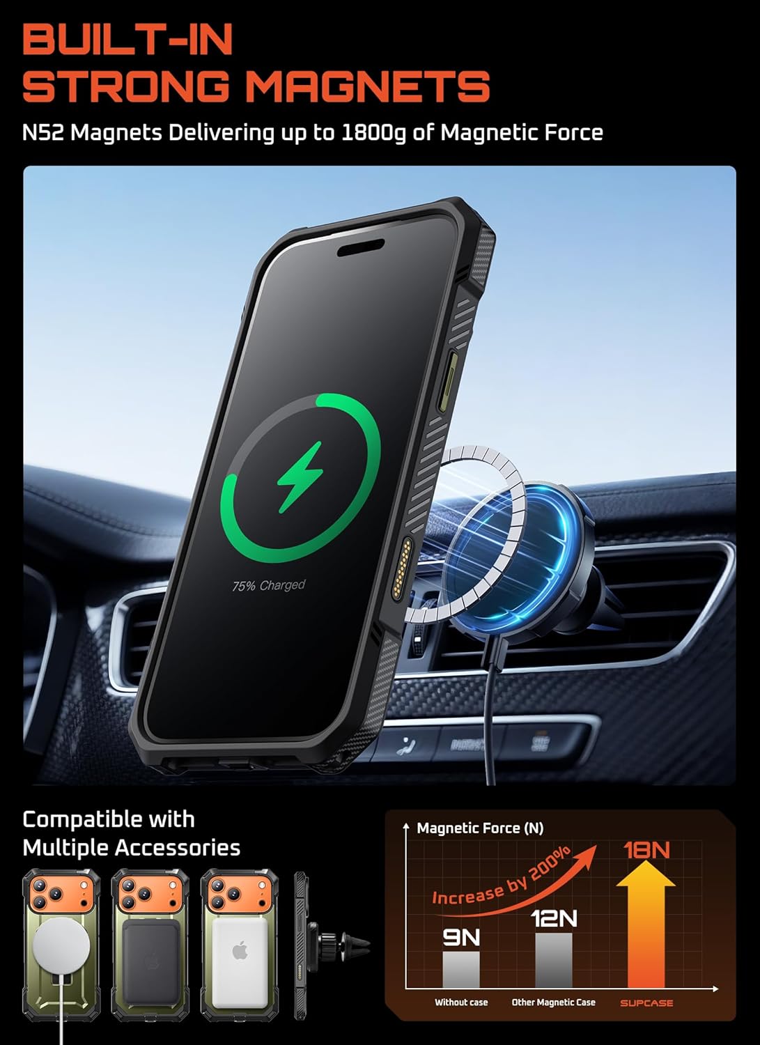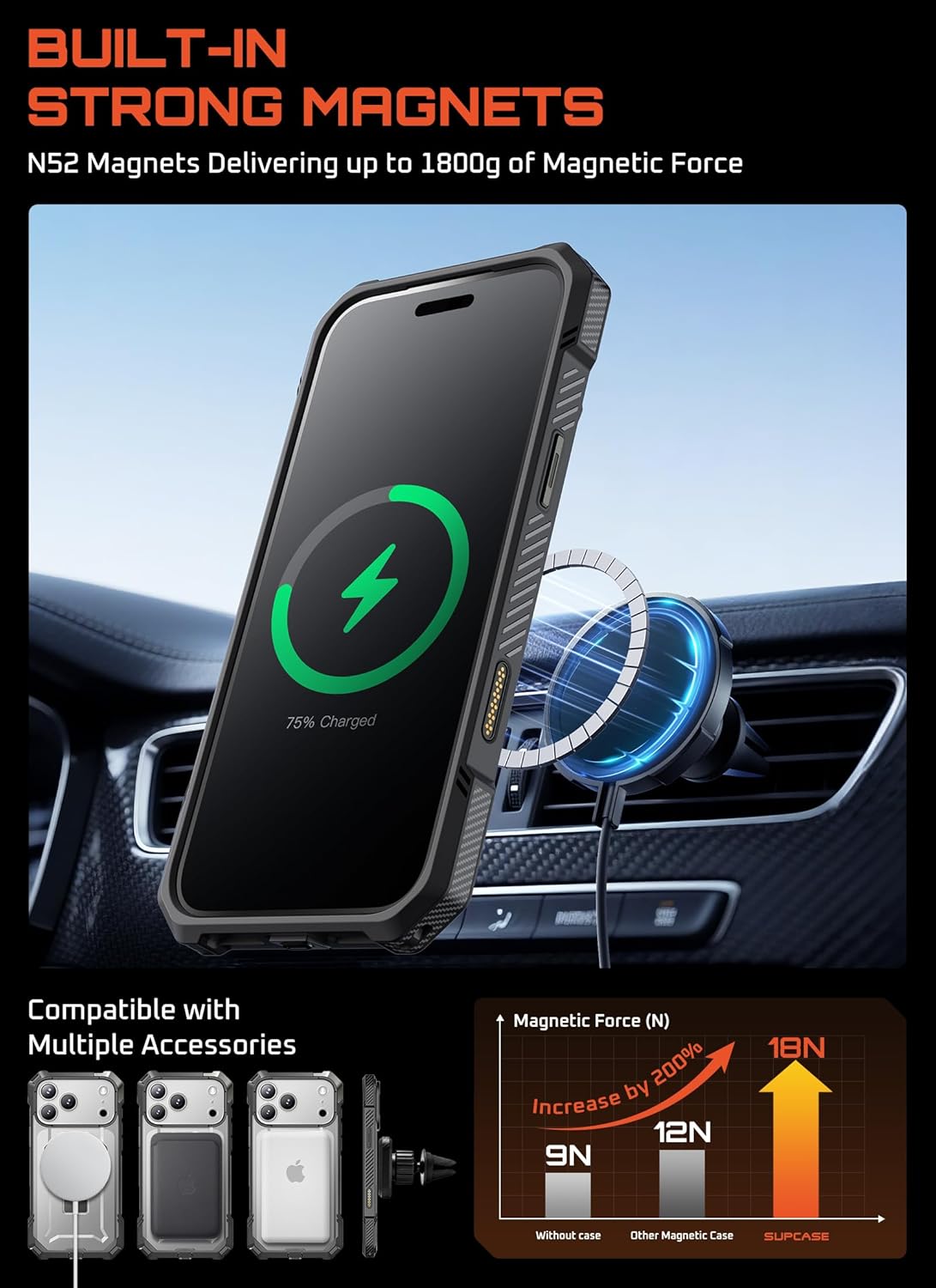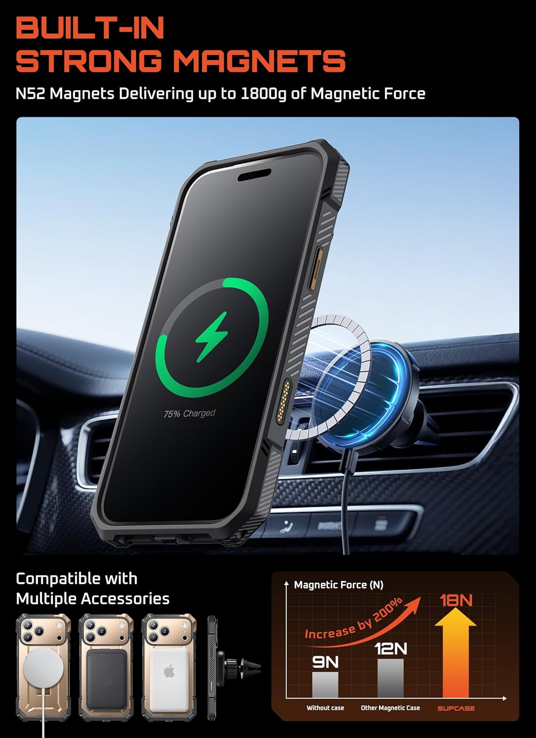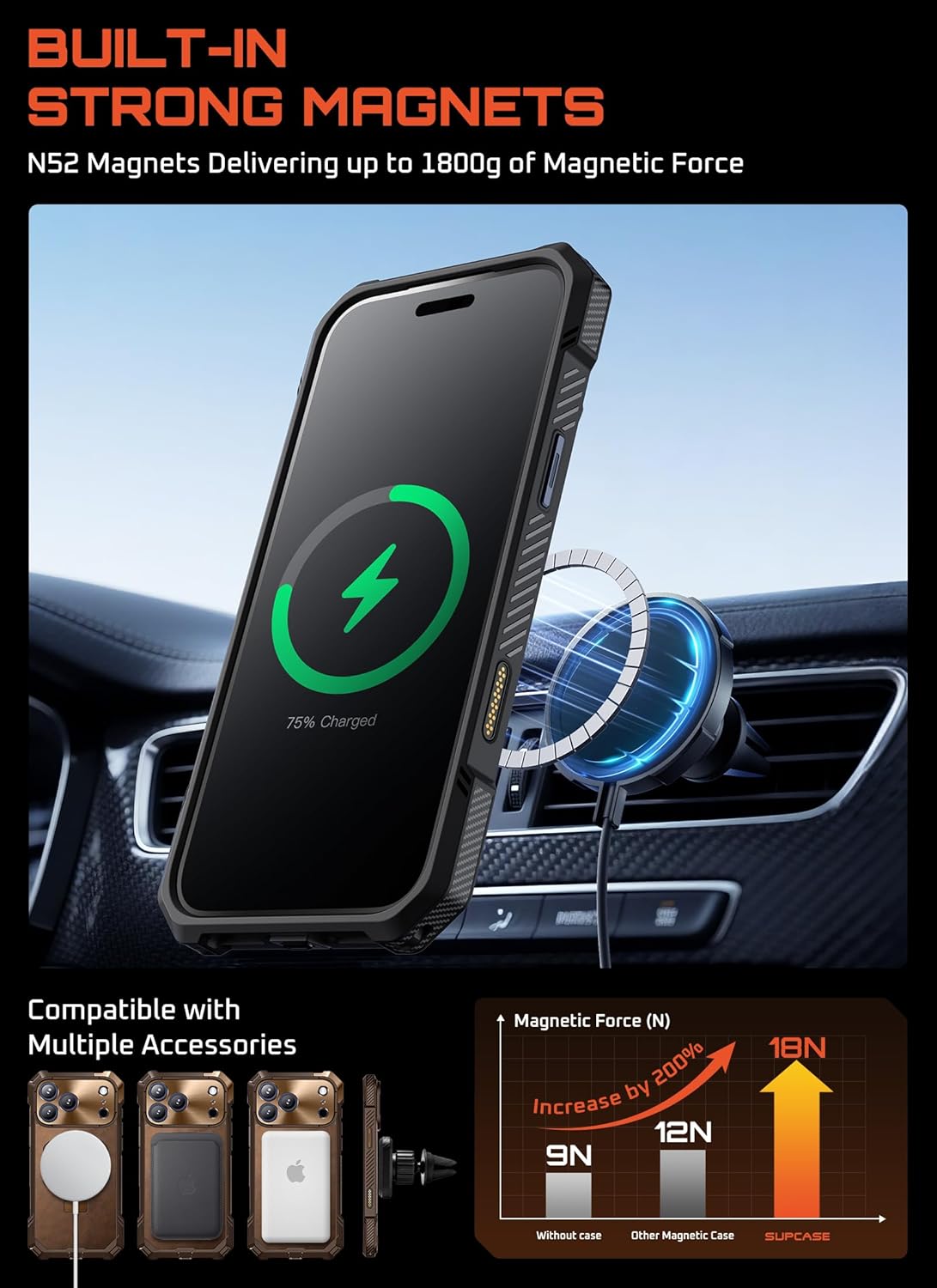 • [Kickstand & MagSafe Features]: Built-in aluminum alloy kickstand provides multiple viewing angles. N52 strong magnet with up to 1800g magnetic force ensures seamless compatibility with MagSafe accessories.