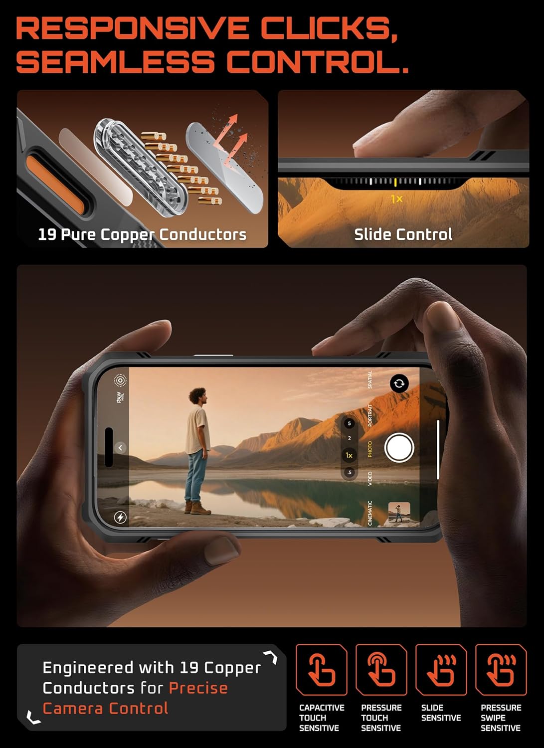 Additional Features Camera Control Cover, Compatible with MagSafe, Kickstand, Shock-Absorbent